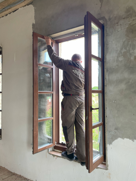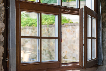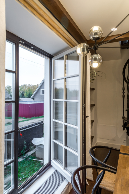 Штульповые деревянные окна выделяются своим изысканным внешним видом и уникальными характеристиками. Открытые створки обеспечивают обширный обзор из окна, что особенно ценно для частных домов или квартир, с видом на живописные местности.